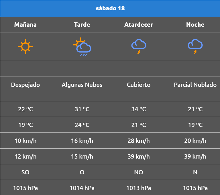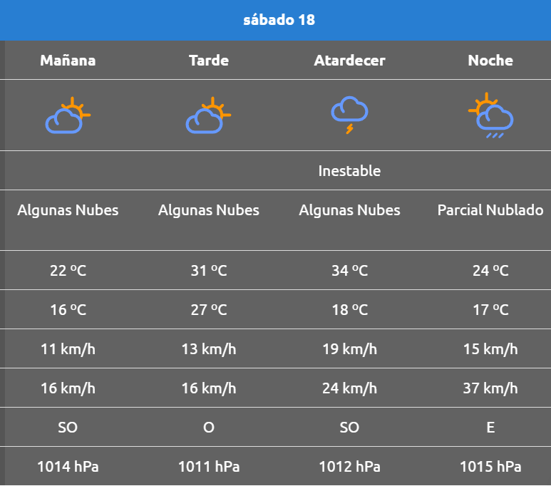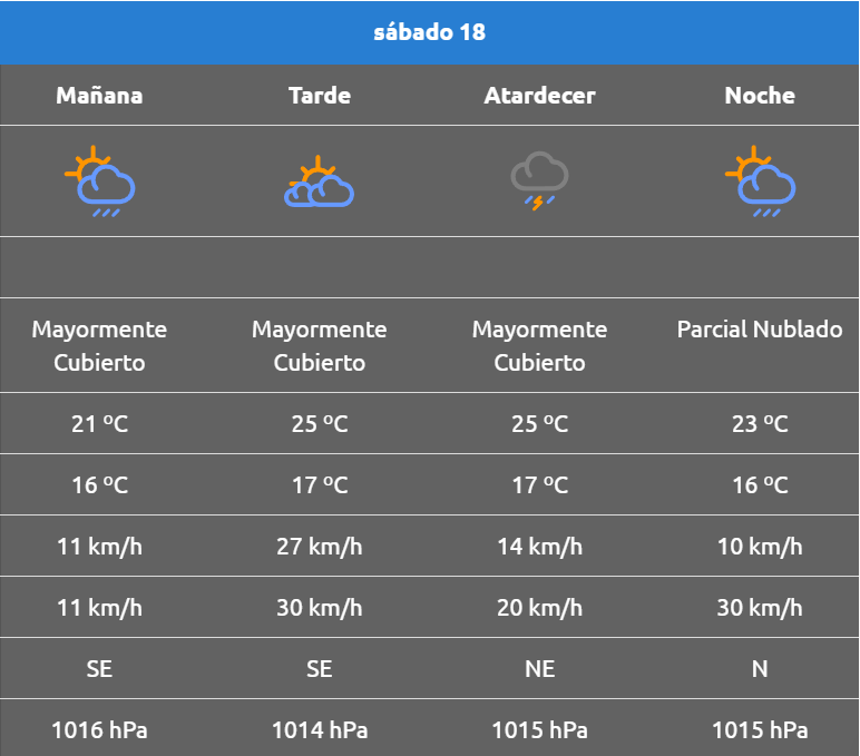 En Las Grutas la temperatura no superará los 25°C. El viento no será protagonista, pero sí se pronostican ráfagas de 30 kilómetros por hora. La lluvia es la que predominará este sábado.