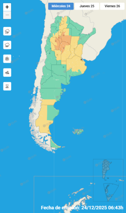 El Servicio Meteorológico Nacional (SMN) advirtió por las condiciones del tiempo este 24 de diciembre, en la previa de una de las fiestas de fin de año.