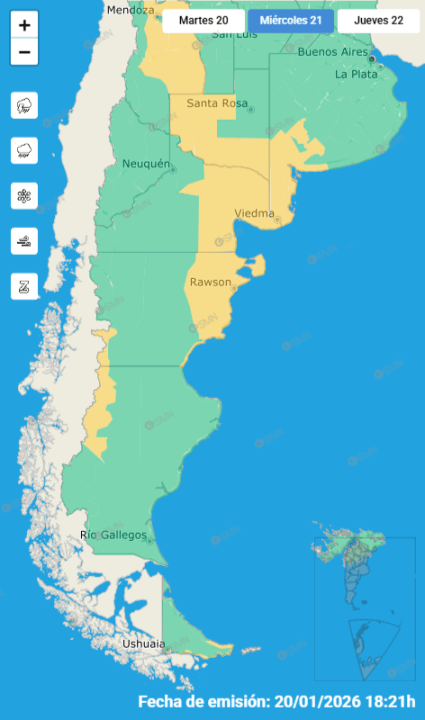 El Servicio Meteorológico Nacional (SMN) emitió una alerta amarilla por tormentas para parte de la provincia de Río Negro para este miércoles 21 de enero de 2026. El aviso fue publicado en su sitio web oficial y rige para el período de la tarde y la noche. Los detalles.