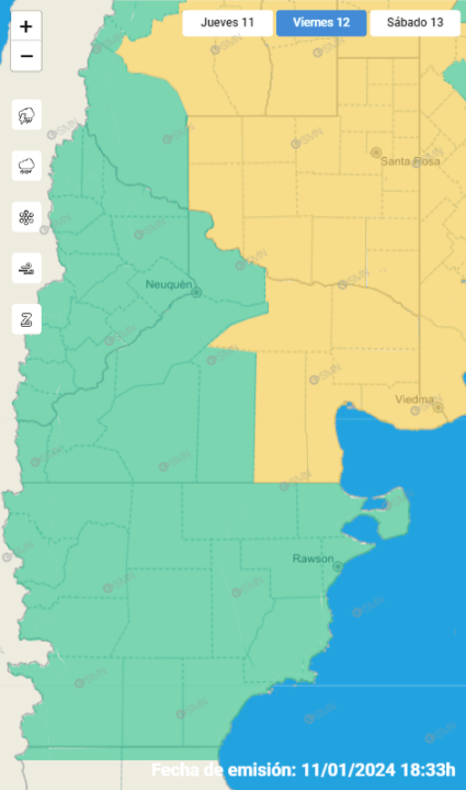 Tras el alerta amillo que rigió este jueves en el Alto Valle de Neuquén y Río Negro, el Servicio Meteorológico Nacional (SMN) mantiene para hoy viernes la advertencia por tormentas para el este del territorio rionegrino.
