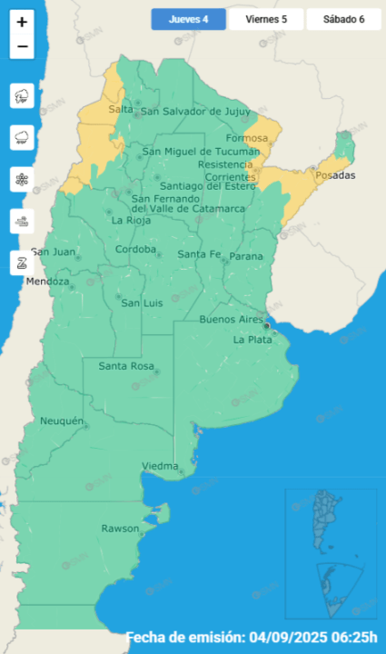 El Servicio Meteorológico Nacional (SMN) advirtió por las condiciones del tiempo este 4 de septiembre.