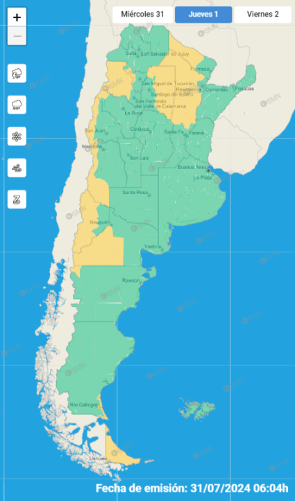 El Servicio Meteorológico Nacional emitió alerta meteorológica para esta semana en la provincia de Neuquén y Río Negro. Rige para este miércoles en el norte y la zona cordillerana de la provincia donde se esperan nevadas y adelantaron fuertes vientos para el jueves 1 de agosto que afectarán a Río Negro. Ese día también hay alerta por nieve en la zona cordillerana rionegrina.