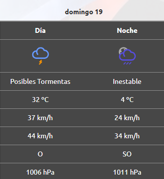 Por la noche el tiempo estará inestable y la mínima será de 4°C, mientras que el viento bajará su incidencia y cambiará de dirección hacia el sudoeste.