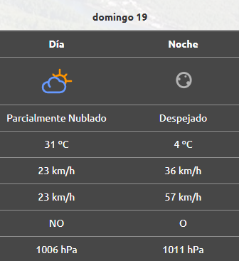 Por la noche, el cielo estará despejado y la mínima será de 4°C, mientras que habrá mayor incidencia del viento este el oeste a 36 km/h, con ráfagas de casi 60 km/h.