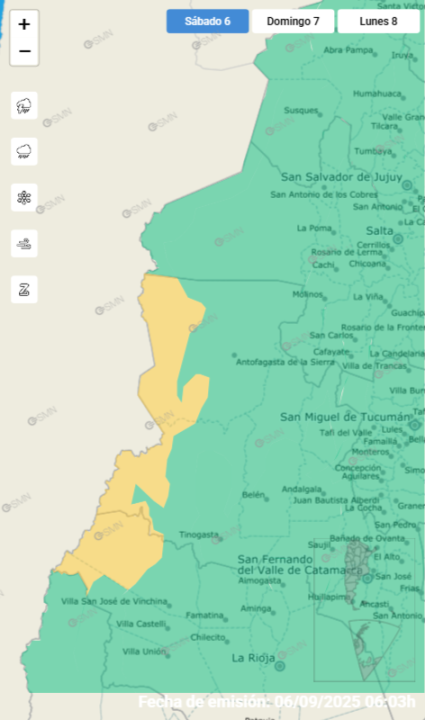 El Servicio Meteorológico Nacional (SMN) advirtió por las condiciones del tiempo este 6 de septiembre.