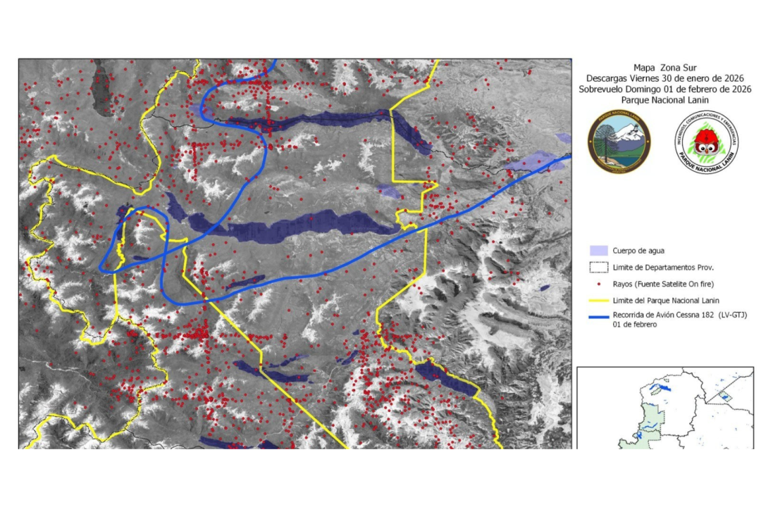 Desde el Parque Nacional Lanín informaron que continuarán con el monitoreo preventivo debido a la actividad eléctrica registrada en los últimos días y reiteraron la importancia de denunciar rápidamente cualquier columna de humo.