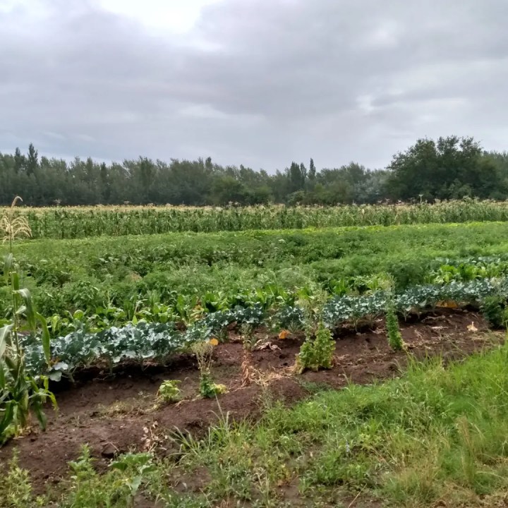 “En la primavera-verano del 2021/22 comenzamos con la huerta para ofrecer productos a la comunidad en asociación con una trabajadora agrícola de la localidad que se sumó al proyecto. Se destinó una 1 ½ hectárea y ahí plantamos lechugas, verdeo, morrones, ajíes (dulce y picantes), tomates (roma, san marzano, cherrys, perita, platense, cabeza de buey), berenjenas, melones, sandías, zucchinis, tronco, acelga, akusai, kale, repollos, brócolis, zanahorias, verdeo, perejil, albahacas, maíces, pepinos, mentas, lavandas y orégano”, comenta Mariano.