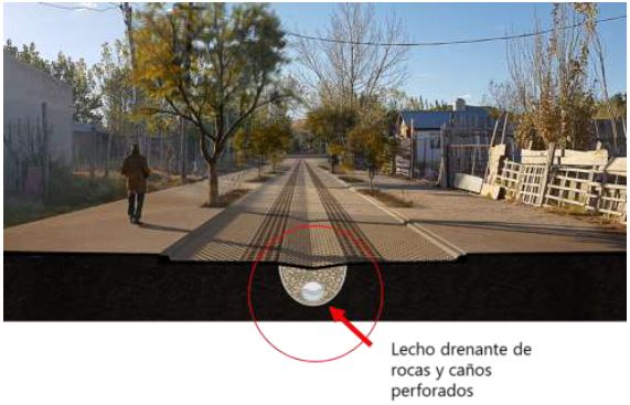 • Diseñar un sistema de drenaje tipo francés en calles internas del barrio, vías de circulación peatonal y vehicular restringido a frentistas, emergencias y proveedores.