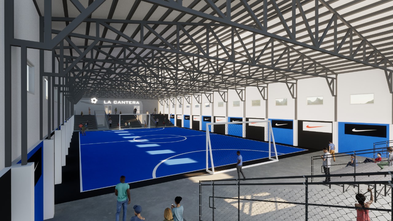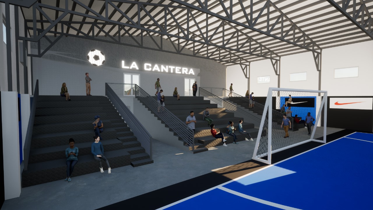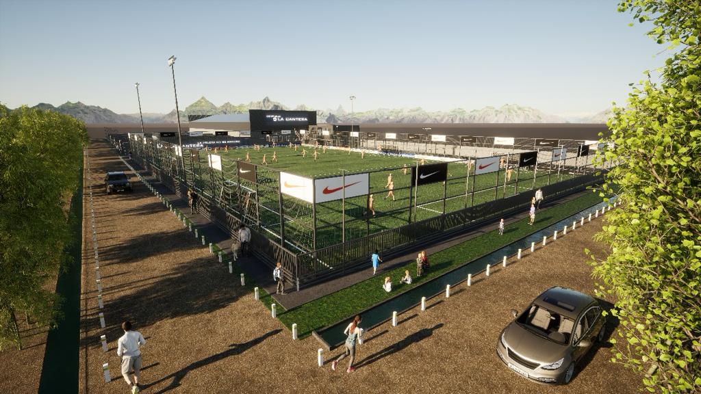 En esta primera etapa, La Cantera contará con una cancha de césped sintético de 77 x 42 metros, que podrá dividirse en tres canchas más pequeñas para juegos de fútbol de seis por equipo. Además, estará equipada con cuatro torres de iluminación de 12 metros, vestuarios con duchas y baños para locales y visitantes, dos canchas de fútbol-tenis, y una zona de consumos con capacidad para 60 personas, cocina y baños, incluyendo accesos adaptados para personas con movilidad reducida.