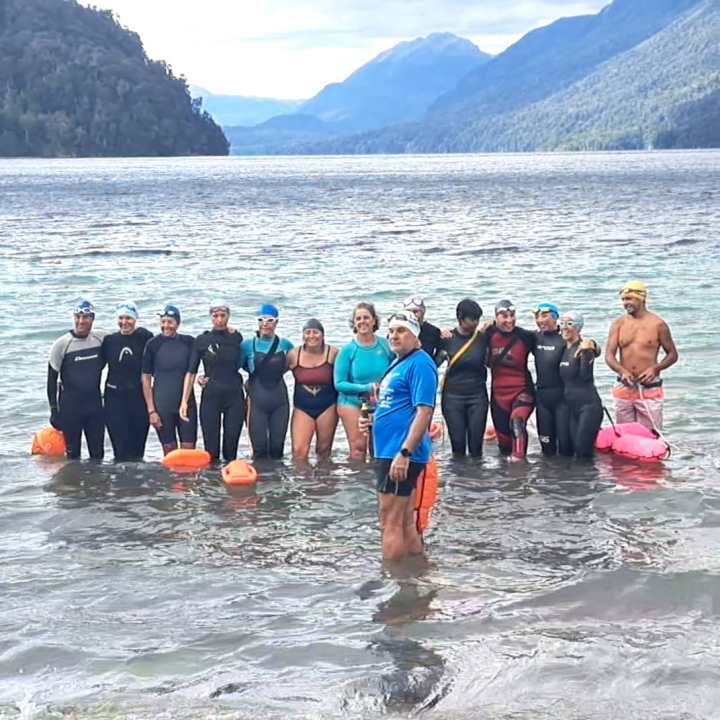 “En octubre del 2021 cerraron la única pileta que teníamos en La Angostura. Era privada. Tenía una falla, salía muy caro el arreglo y decidieron cerrarla. Con esta realidad de no tener una pileta pero estar rodeados de lagos, armé un grupo de adultos para nadar en el lago Correntoso”, señaló esta cipoleña, de 39 años, radicada en Villa La Angostura desde hace casi una década.