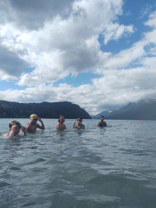 Ante la falta de piletas y la gran demanda, decidió enseñar natación en un lago de Villa La Angostura