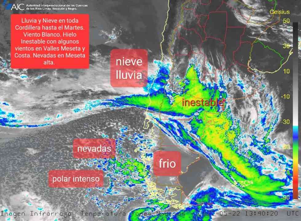 Las tormentas se volvieron intensas este domingo en toda la región norpatagónica, a pesar de haber sido pronosticadas durante los últimos días de la semana. Esas condiciones se van a mantener durante los próximos días, acompañadas por bajas temperaturas.
