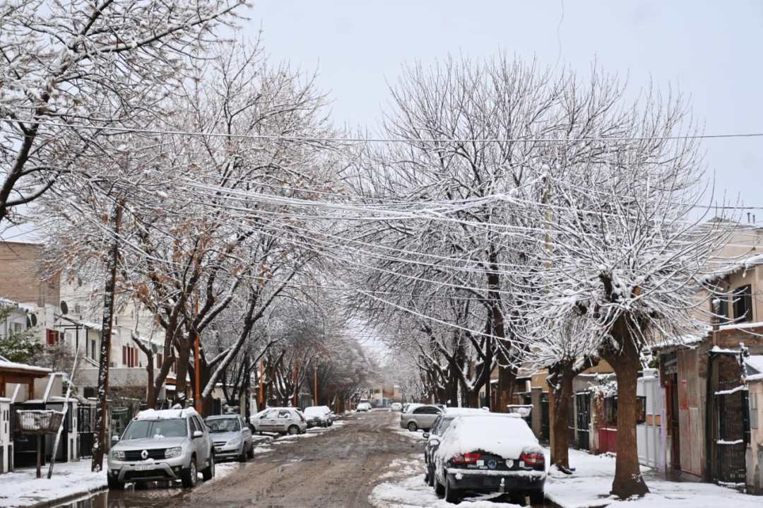 En Roca, todas las calles de la zona céntrica y los barrios quedaron completamente cubiertas por un manto blanco y también de hielo generando desesperación en los automovilistas que circulaban por el sector.