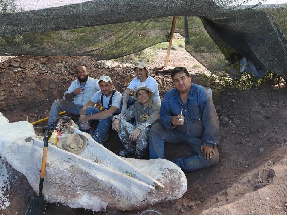 Empezó el trabajo de campo y cada persona del equipo se transformó en un obrero que pasó más de 25 jornadas rompiendo roca por roca. Yeso, agua, consolidantes y toneladas de paciencia se emplearon para envolver cada bloque fósil, que fue luego trasladado a 73 kilómetros de allí, al museo de Rincón de los Sauces.