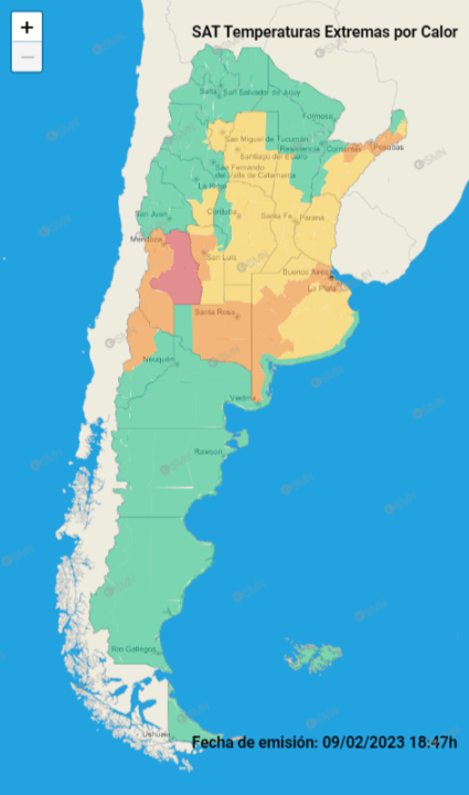 Según detallaron, las zonas afectadas por las altas temperaturas comprenden al este de Loncopué, este de Picunches, este de Ñorquín, oeste de Añelo, oeste de Pehuenches, la zona sur de Chos Malal y sur de Minas.