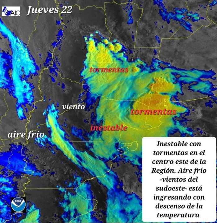 Estas condiciones con marcado descenso de la temperatura, inestabilidad y vientos se extienden a los valles, mesetas y costa de ambas provincias, explicó la AIC.