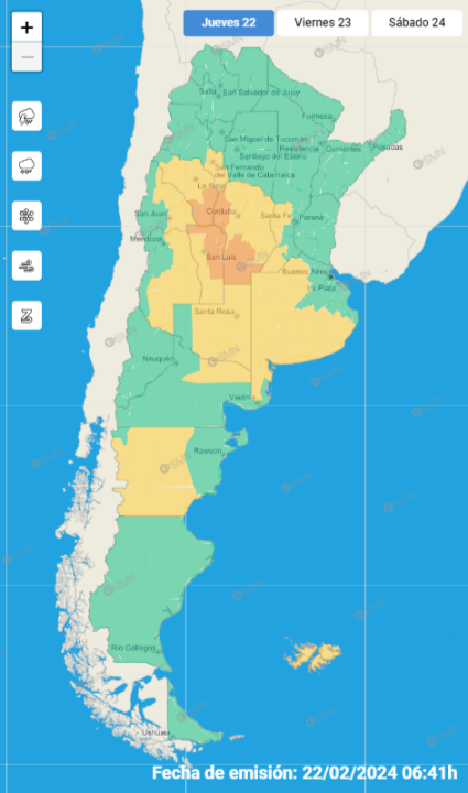 El Servicio Meteorológico Nacional informó para este jueves un alerta amarillo por tormentas para el sector noreste de la provincia, puntualmente los departamentos Pichi Mahuida y Avellaneda que juntos comprenden las localidades de Río Colorado, Choele Choel, Lamarque, Beltrán, Belisle, Darwuin, Pomona y Chelforó.