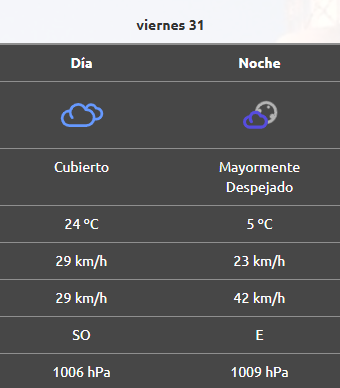 Por la noche la mínima será de 5°C, mientras que el viento cambiará de dirección desde el este con ráfagas superiores a los 40 km/h.