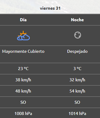 En General Roca y alrededores se espera un viernes nublado, con una máxima de 23°C y viento desde el sudoeste con ráfagas de más de 40 km/h. Por la noche la mínima será de 3°C y las ráfagas de viento alcanzarán los 50 km/h.