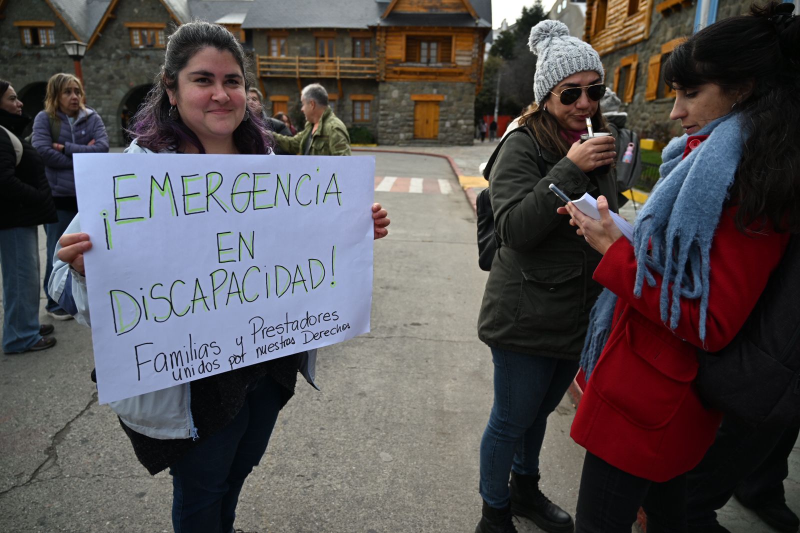 «Emergencia en discapacidad» se leía en la bandera que encabezaba la marcha este jueves a la mañana en el Centro Cívico. Personas con discapacidad, familiares y terapeutas reclamaron por la desactualización de honorarios, la demora en la autorización de los tratamientos y en los pagos y, la quita de pensiones y medicamentos. Se congregaron en la plaza del Centro Cívico en Bariloche, marcharon unas pocas cuadras por la calle Mitre y regresaron a donde se habían concentrado. Siempre encabezados por varias personas en sillas de ruedas.