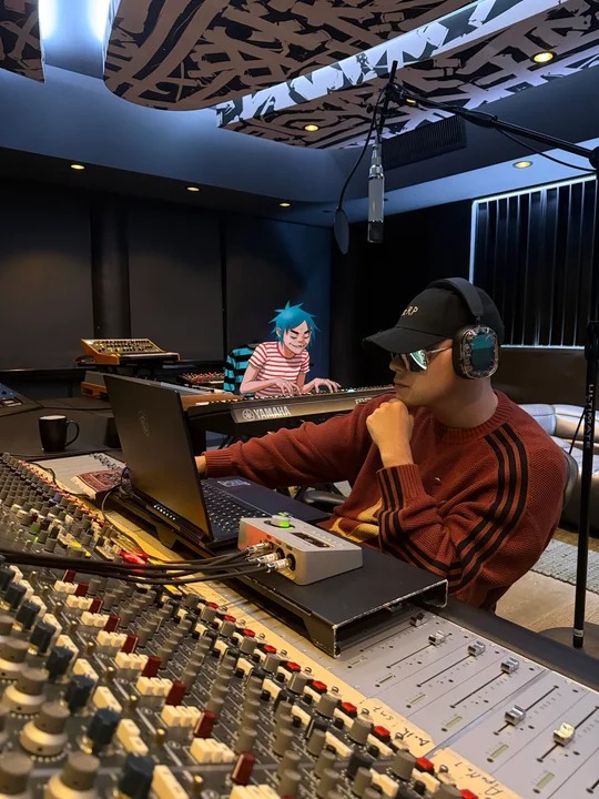 Además, acompañó su posteo con imágenes de él en el estudio de grabación, acompañadas de la imagen virtual del líder de la banda, Damon Albarn.