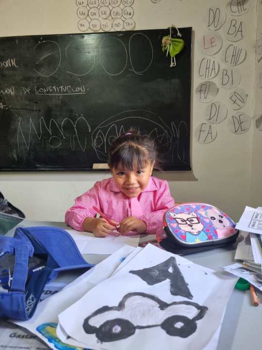 La más chiquita del colegio. Tiene 5 años y recibe clases acorde al nivel inicial