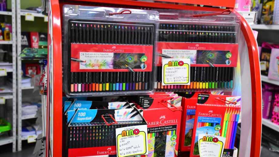 Lapiceras, lápices negros o lápices de colores, cuadernos, marcadores, goma de borrar, cartucheras, sacapuntas, goma de pegar, mochilas, carpetas, hojas, corrector, reglas, tazas plásticas.