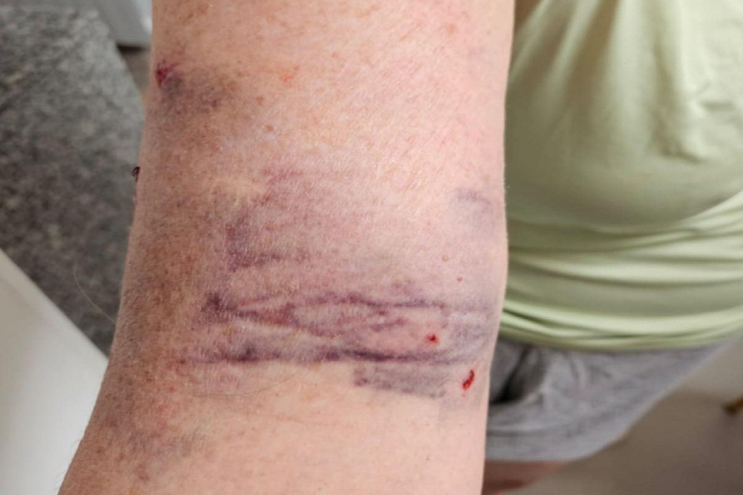 La mujer sufrió numerosas mordeduras que requirieron sutura.