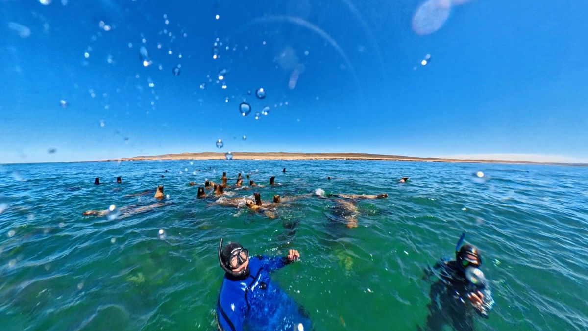 “Conseguimos un permiso para hacerlo en el asentamiento de lobos que está en la entrada de la bahía, sobre los bancos que se forman con la marea baja”, explica Claudio Barbieri, referente de Cota Cero, la empresa que desde hace años trabaja en el Golfo y que ahora abre una nueva puerta para quienes buscan algo más que sol y reposera. “También tenemos el permiso para hacerlo en Puerto Lobos, en el área natural protegida Islote Lobos, del lado de Sierra Grande. Esa experiencia va a arrancar en cualquier momento”.