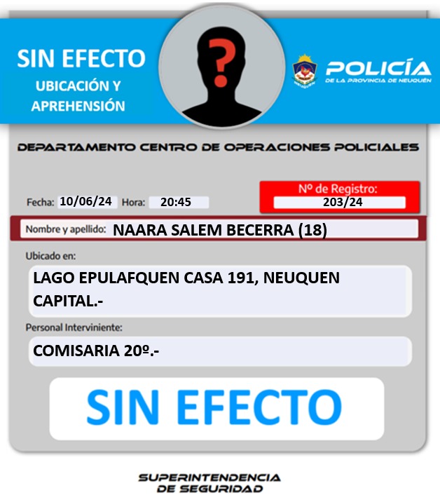 La Policía de Neuquén había emitido un pedido de búsqueda para dar con una joven de 18 años que se encontraba desaparecida desde el domingo 9 de junio. Este lunes lograron localizarla.