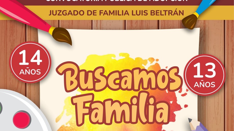 El Juzgado de Familia convoca a familias que quieran adoptar a dos hermanos, una adolescente de 13 y un adolescente de 14 años. La convocatoria surgió desde ese órgano del Poder Judicial de Luis Beltrán, a través del Registro Único de Aspirantes a Guarda con Fines Adoptivos.