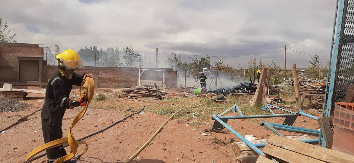 Un principio de incendio se registró en una maderera cercana a la rotonda El Dinosaurio. Bomberos Voluntarios debieron intervenir para evitar que se expandieran las llamas.