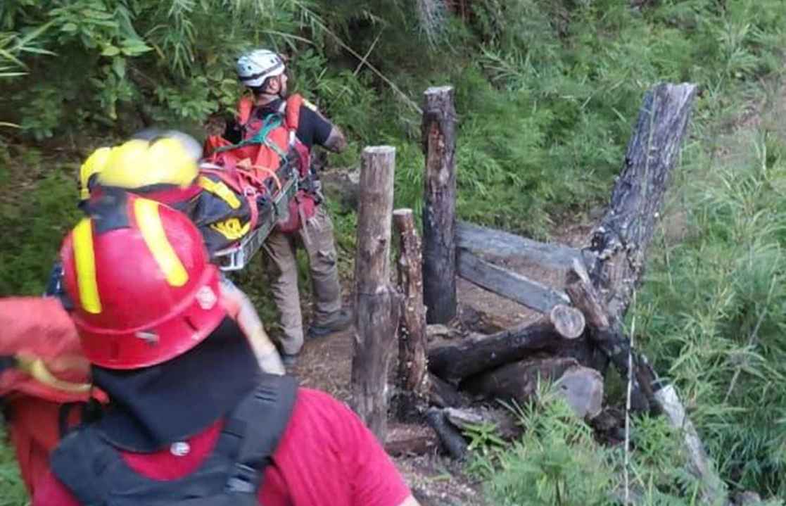 Una cuadrilla integrada por cinco rescatistas del ICE Sur se dirigió al lugar para evaluar a la víctima. Tras el control inicial, el personal procedió a la evacuación mediante una camilla canasto, debido a las condiciones del terreno y al estado general de la mujer.