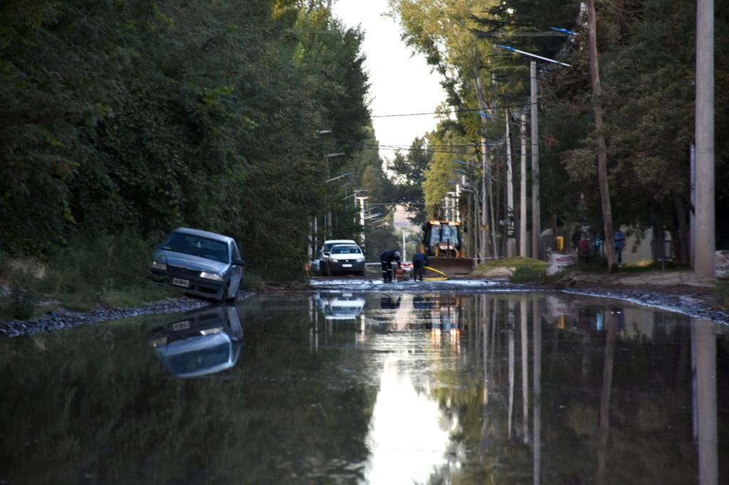 Durante las primeras horas del miércoles, la pérdida inundó las calles sobre Obrero Argentino, entre Richieri y Copahue.