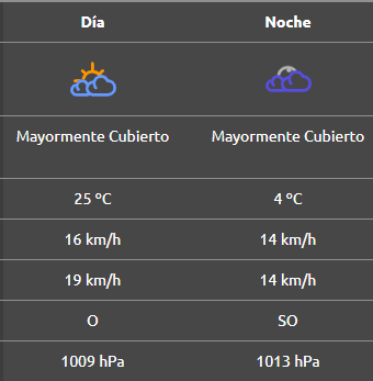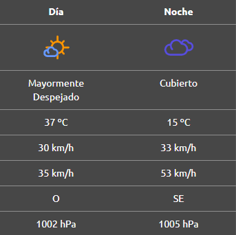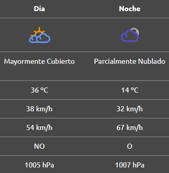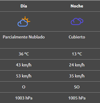 Por la noche la mínima será de 14°C, mientras que el viento cambiará de dirección hacia el oeste con ráfagas de casi 70 km/h.