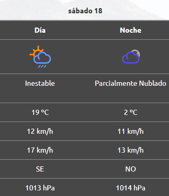 En San Martín de los Andes también estará inestable con posibles lluvias, con una máxima de 17°C y una leve brisa desde el este. Por la noche, la mínima será de 0°C y el viento surcará desde el oeste con baja intensidad.