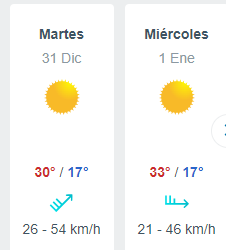 El primer día del 2025, las temperaturas incrementarán hasta los 30°C y el viento se mantendrá.