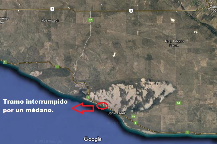 Hace más de dos años que los médanos ganaron la batalla y borraron totalmente un tramo de 6 kilómetros del Camino de la Costa (Ruta Provincial N° 1), que conecta las diversas playas de Viedma con el Puerto de San Antonio Este.