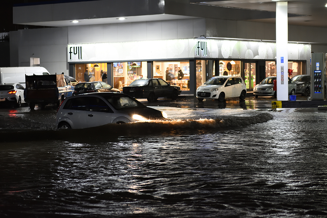 La lluvia comenzó a las 18 horas del domingo y, pasada la medianoche, aún no para. Está pronosticado que siga hasta las 15 del lunes.