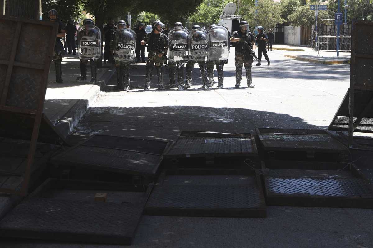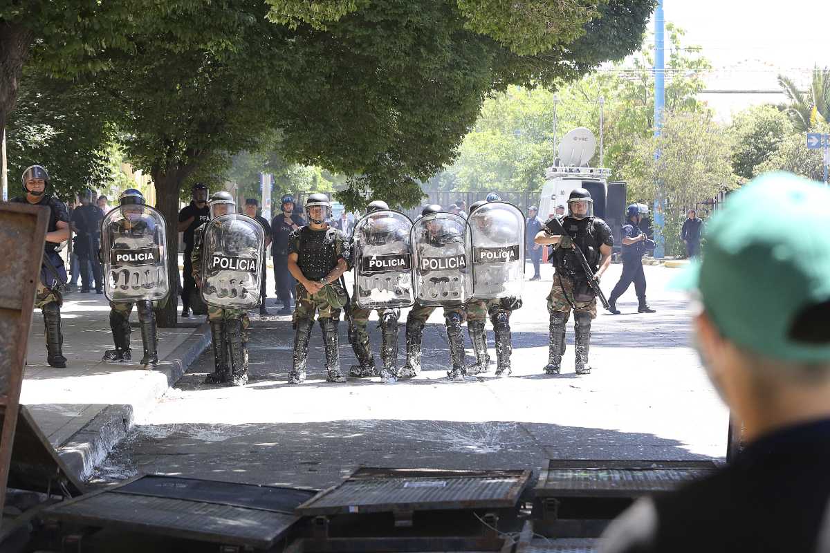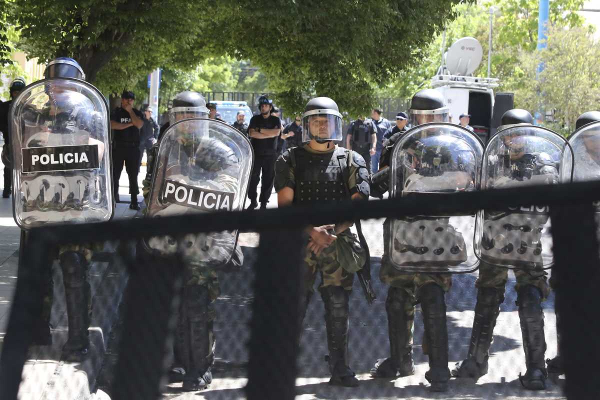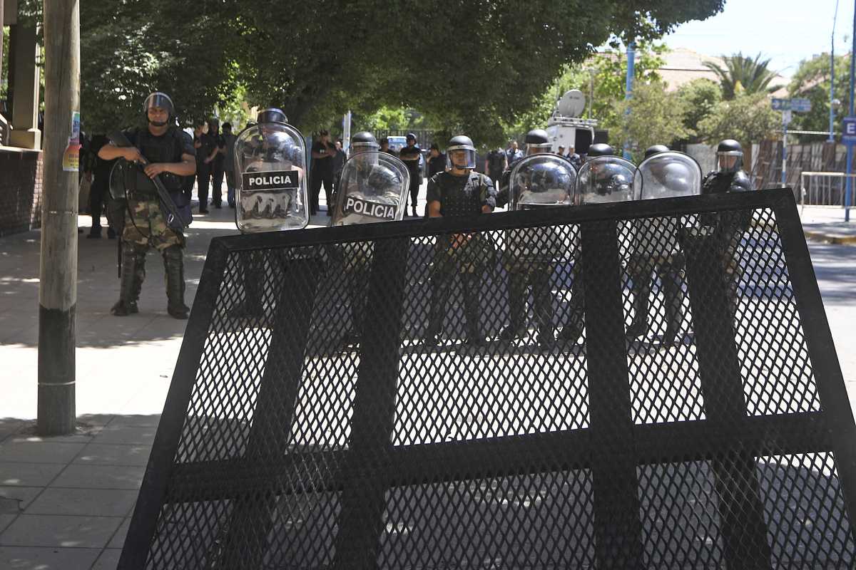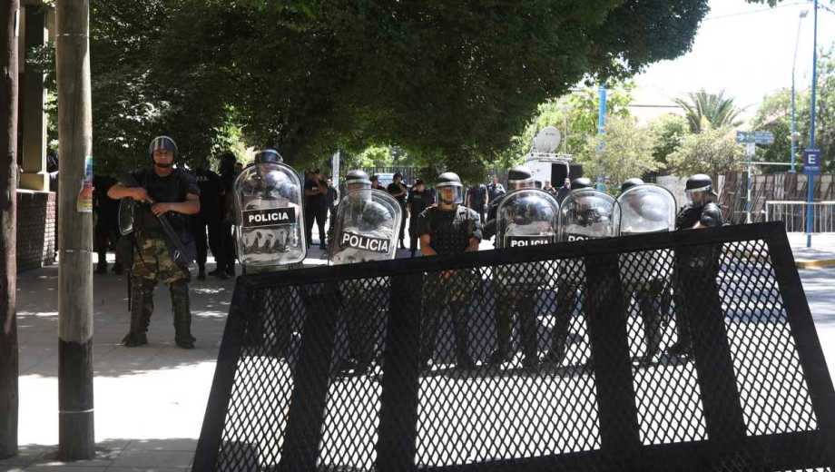 La zona céntrica continuaba con tránsito afectado pasadas las 13 y con presencia de efectivos de la Policía Federal. Un centenar de ellos aún se encuentran custodiando el ingreso al edificio del Tribunal Oral Federal ubicado sobre calle San Martín.