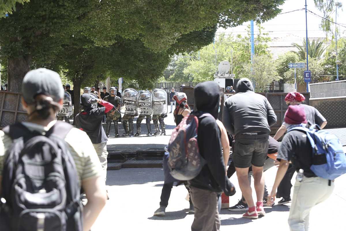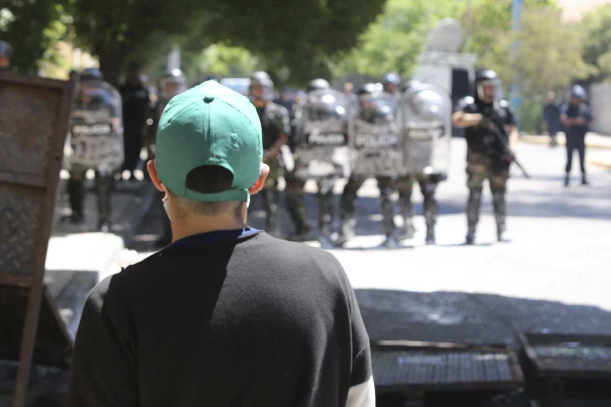 La Policía Federal no tardó en responder y armó un cordón tirando algunos estruendos para lograr dispersarlos, por lo cual hubo breves enfrentamientos entre los efectivos y un grupo de manifestantes, con piedrazos y estruendos, afuera de tribunales.