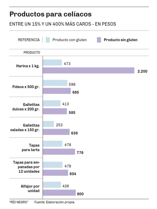 Los números son claros, más del doble se debe gastar en productos sin gluten. Sin contar que faltan productos alimenticios fundamentales como proteínas, frutas, verduras y bebidas.