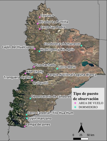 Las observaciones se realizaron en un total de 16 Puestos de Observación, de los cuales 9 son áreas de vuelo y 7 son dormideros comunales.