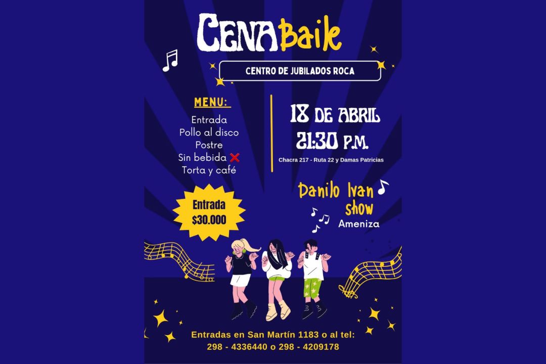 El centro de jubilados pensionados «General Roca» realizará una cena-baile el sábado 18 de abril para recaudar fondos. El evento iniciará a las 21:30 y contará con servicio de buffet, postre, baile y música en vivo.