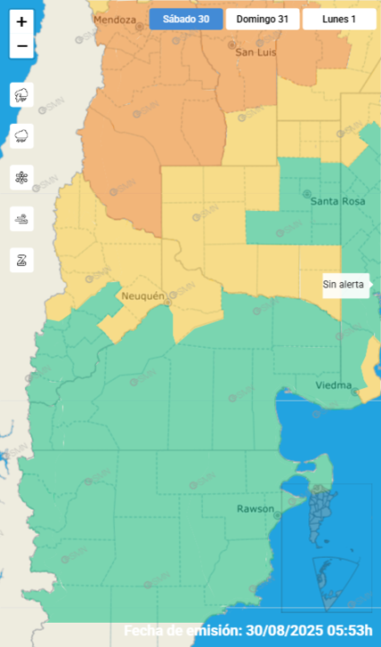 Hay alerta este 30 de agosto en la zona cordillerana de Neuquén.