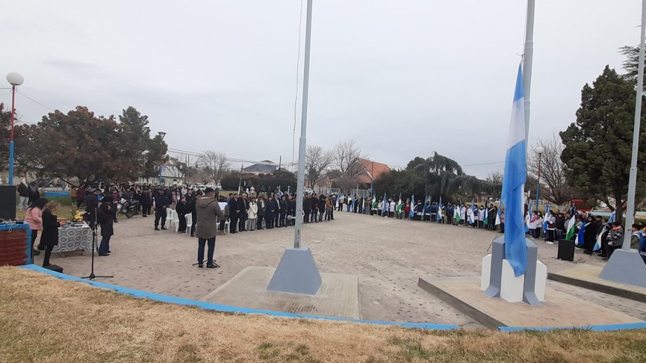 El aniversario se conmemora este sábado 4 de junio. Durante la mañana, se realizó el acto protocolar en la Plaza Cardenal Cagliero, con la presencia de banderas de ceremonia de los establecimientos educativos, de instituciones y la participación de autoridades del municipio local.