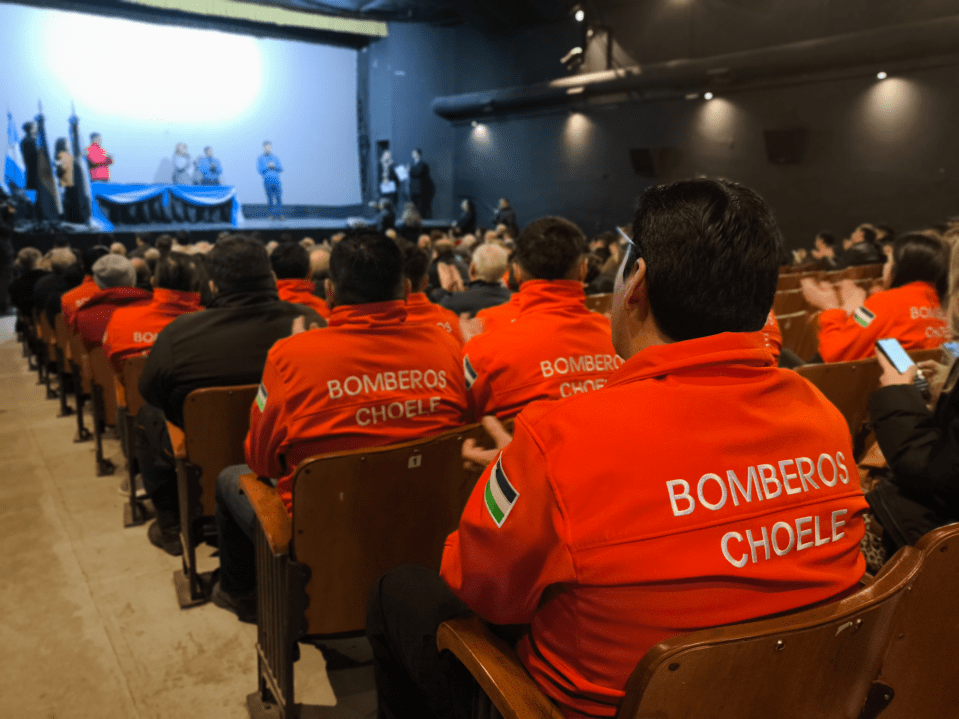 Las actividades continuaron a las 11:00 horas en la sala Cine Teatro, ubicada en Tello y San Martín, donde se llevaron a cabo la firma de convenios y entregas de diversos aportes. Entre los puntos más relevantes, se firmó el Plan Director de Aguas, se entregaron aportes a los Bomberos Voluntarios de Choele Choel y terrenos a sus familias, así como microemprendimientos y aportes a instituciones locales. Además, se realizó un reconocimiento a vecinos por su valioso aporte al desarrollo urbanístico de la ciudad.