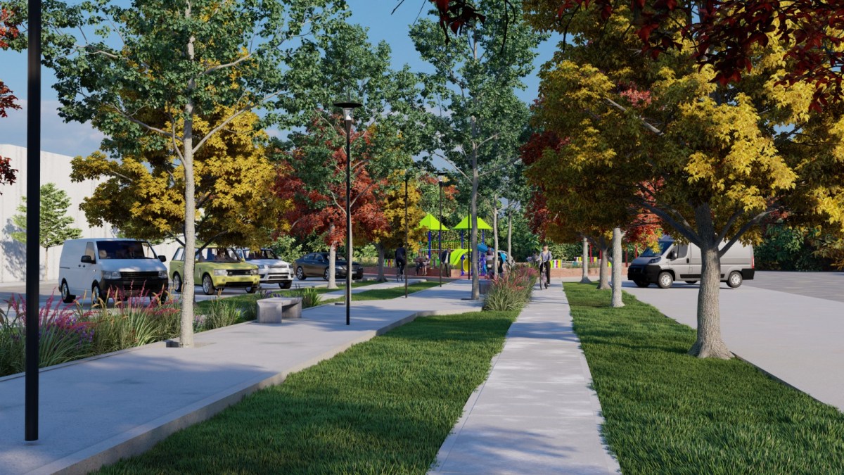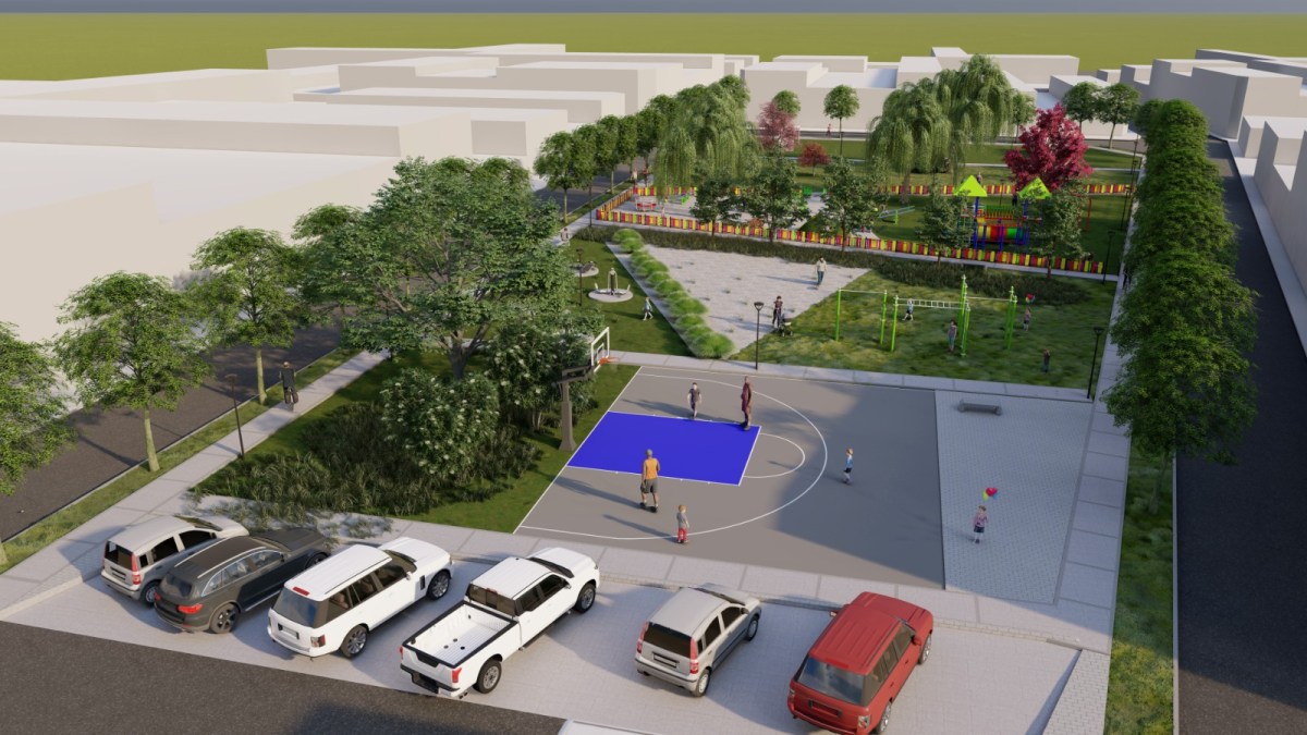 En conjunto con los vecinos del barrio se llevó a cabo el proyecto de la plaza que está actualmente en ejecución. Es así como se logró diseñar un área deportiva respetando la canchita de futbol armada por los chicos del barrio, sumando equipamiento de calistenia y una media cancha de basquet con el fin de generar un buffer entre la calle de tránsito pesado y el estacionamiento con el área recreativa y sensorial que contiene juegos inclusivos y de vanguardia.