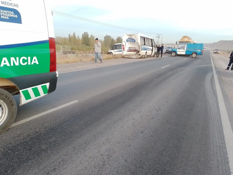 Un colectivo y un camión chocaron en Añelo. Por el impacto, 23 petroleros fueron trasladados al hospital de la localidad, "corazón" de Vaca Muerta. Todo ocurrió esta mañana, sobre la Ruta 7. Se informó que las personas involucradas sufrieron lesiones leves y que se registraron serios daños materiales.