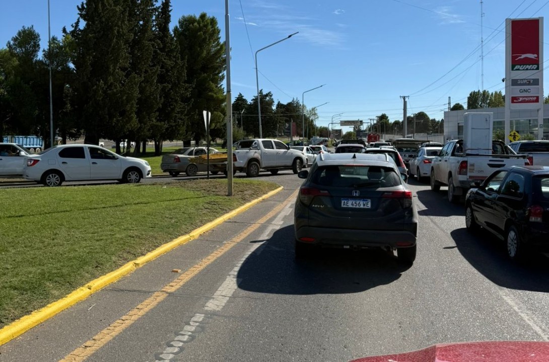Por las demoras, la fila de autos llega hasta la altura del Chango Más, en Avenida Mosconi.